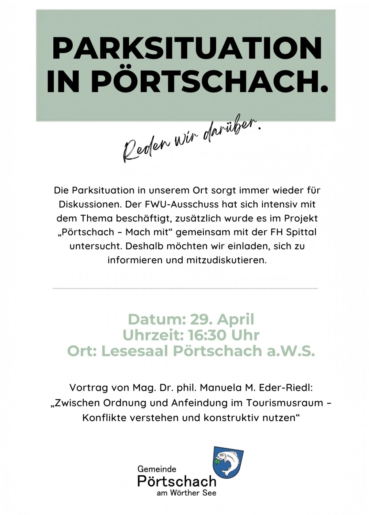 Vortrag "Parksituation in Pörtschach" am 29. April um 16:30 Uhr im Lesesaal